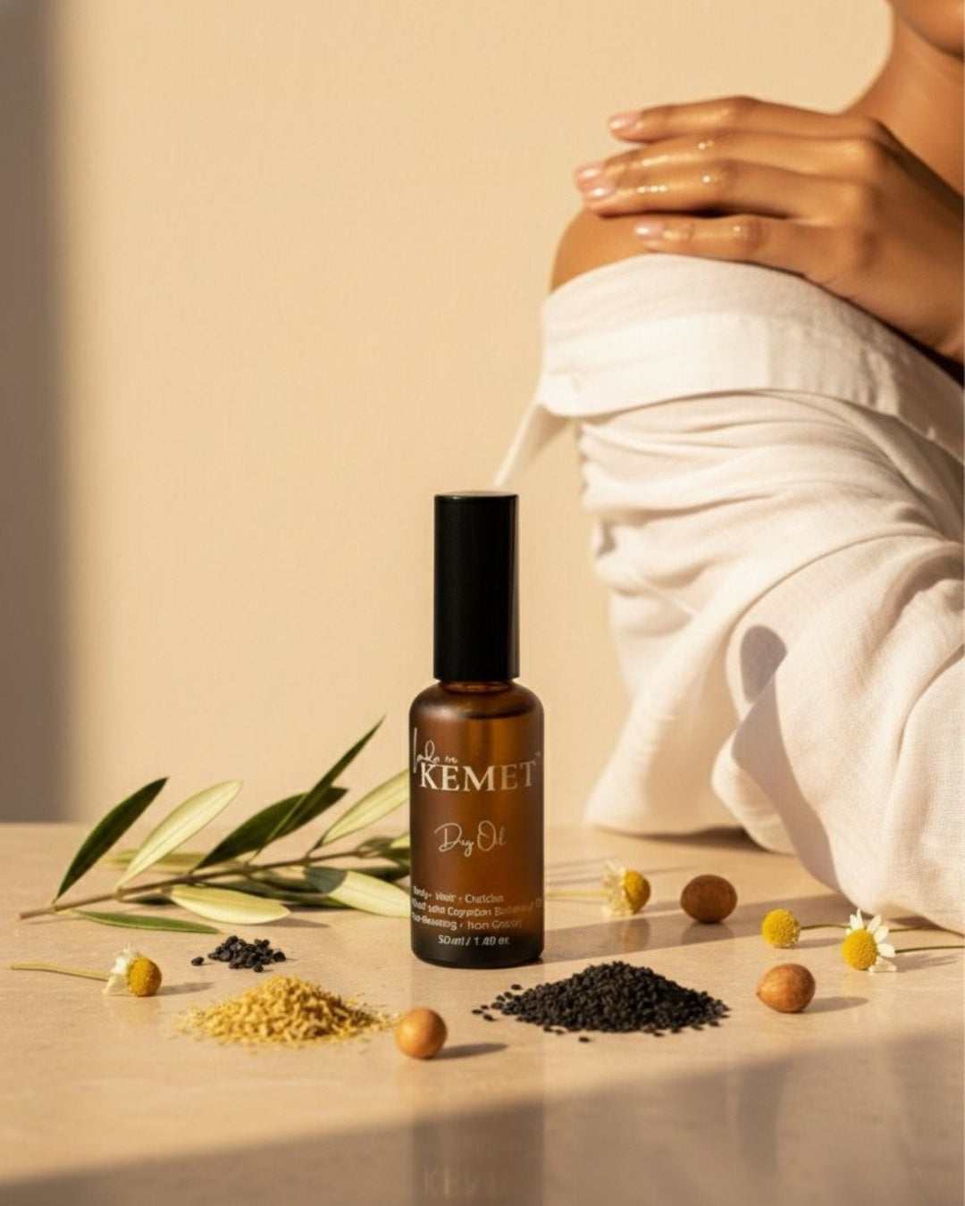 Experience the essence of Egypt’s golden botanicals with our Egyptian Glow Dry Oil, a luxurious blend of rare, naturally grown Egyptian oils. This lightweight, fast-absorbing formula deeply nourishes skin and hair, leaving behind a silky, radiant finish without any greasiness. Enriched with antioxidant-rich pomegranate, soothing jojoba, and regenerating black seed oil, it restores softness, hydration, and glow. The delicate scent of Egyptian geranium, neroli, or jasmine enhances your self-care ritual with a touch of timeless elegance.
